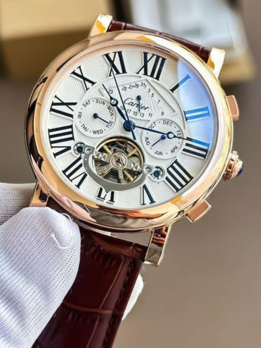 Carti_erBrown Leather Chrono Working Automatic Machine