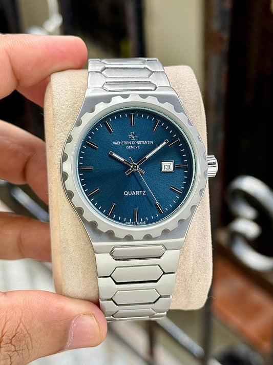 Make a bold yet sophisticated statement with this Navy Blue Dial Metal Strap Watch, where deep oceanic elegance meets modern horology. The striking sunray navy blue dial shimmers with...
